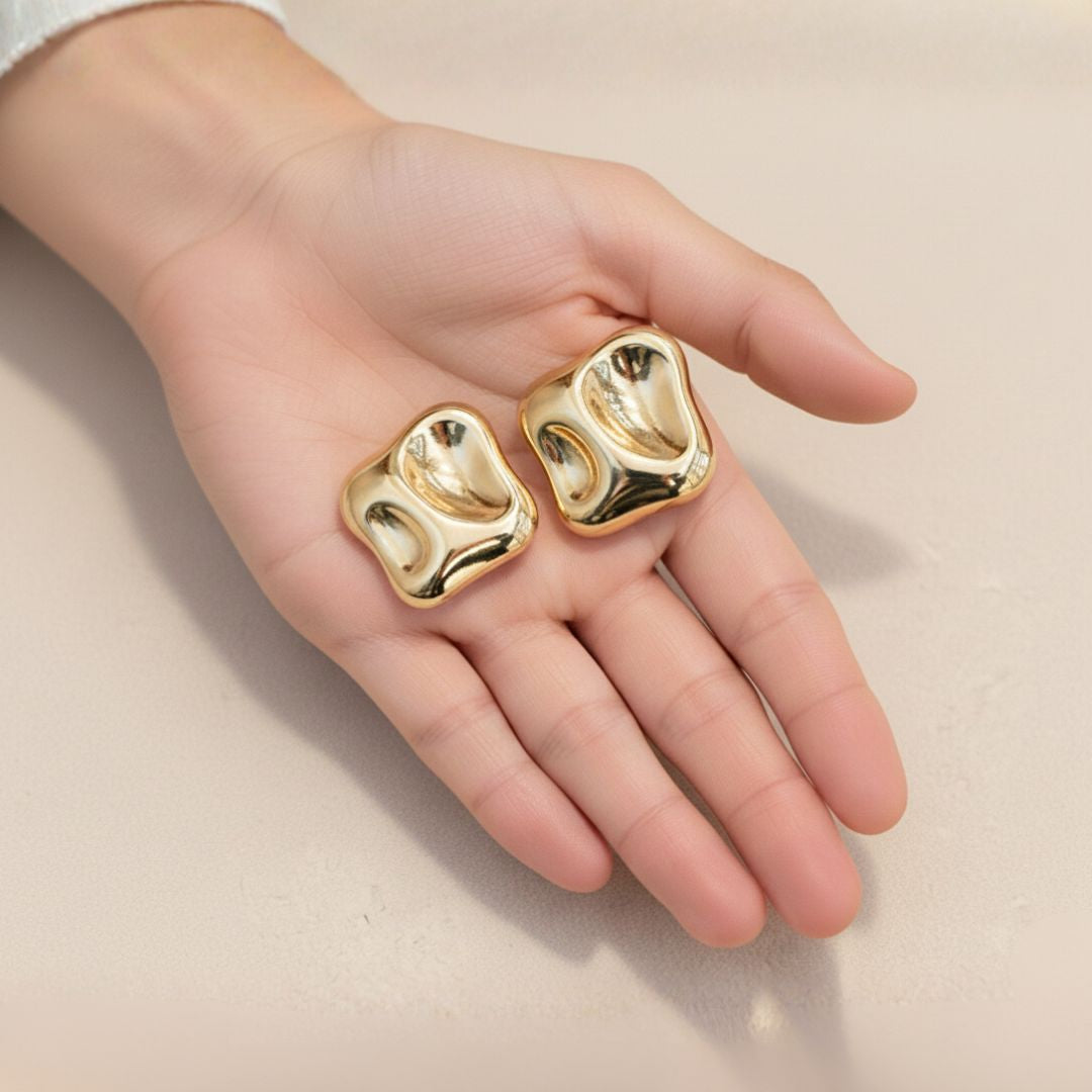 Aros Auric en acero dorado con forma irregular