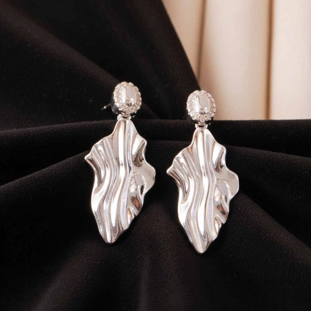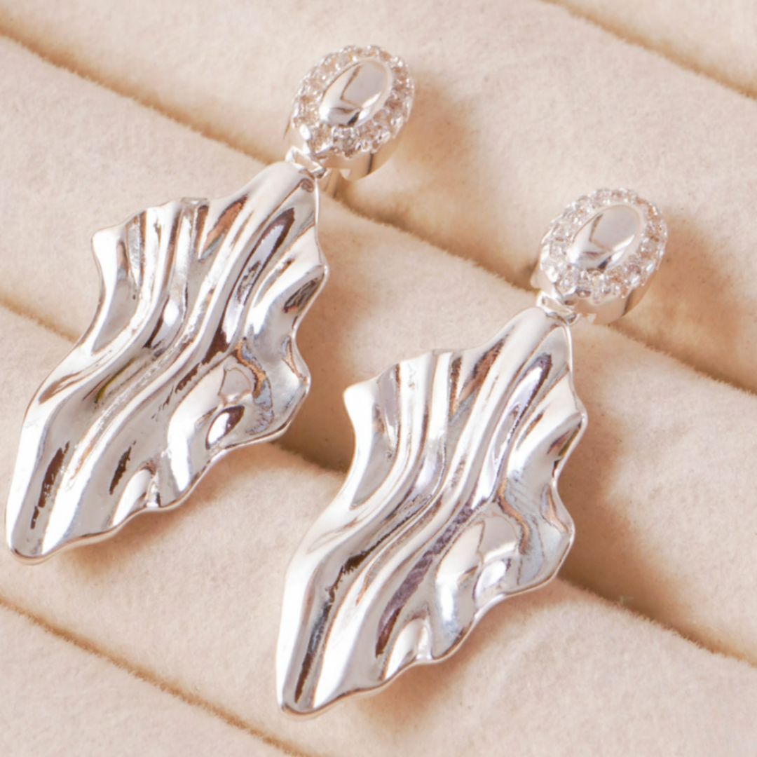 Aros Ondine italianos tipo chapón con forma de hoja en plata